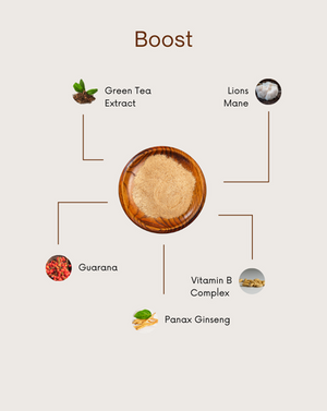 This truly is a hero product with unbelievable benefits! Boost is a delicious, refreshing cold drink (peach & pineapple flavour) that gives you a long lasting burst of physical energy, mental energy, motivation and willpower! And as if that's not enough, it's full of green tea extract to detox the body and offer all the health benefits associated with green tea! This delicious daily drink, made with a very smart blend of high quality ingredients, is designed to cleanse your body, boost your mood and get you going. All whilst avoiding those terrible caffeine jitters and the energy peaks and troughs we usually experience from sugary energy drinks. It contains: