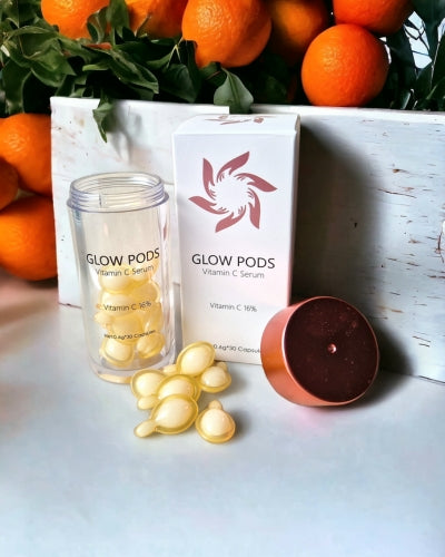 There is never a dull moment when Glow Pods are around! Not all Vitamin C serums are created equal but with 16% L-Ascorbic acid, Glow Pods offer the perfect concentration of the best form of Vitamin C, which has been encapsulated to protect its efficacy. Introduce Glow Pods to your daily routine to brighten up your skin and even out your skin tone. Each capsule gives you the perfect daily dose of this must-have anti-aging vitamin. Vitamin C oxidises when it is exposed to air, light or humidity and therefore loses its efficacy. That is why we've encapsulated ours, so you get the same benefit from every pod!