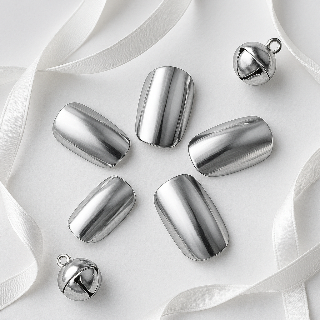 Wrap your fingertips in the magic of winter with Silver Bells - a sleek, mirror-like finish that captures the crisp sparkle of freshly fallen snow. This timeless metallic silver finish embodies sophistication and celebration, reflecting every glimmer of light with icy brilliance. Whether paired with cozy knits or evening glamour, Silver Bells is your statement of modern elegance for the festive season.