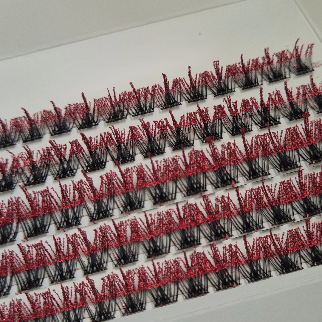 Siren Stare lashes are your Halloween show-stopper! Spooky, sparkly, and oh-so-fun. Dusted with fiery red glitter, they’re made for trick-or-treating, costume parties, or just leaning into the magic of the season. Bold, festive, and a little mischievous, these lashes let your eyes do all the haunting. Because Halloween isn’t just for the kids .... it’s your time to sparkle too.