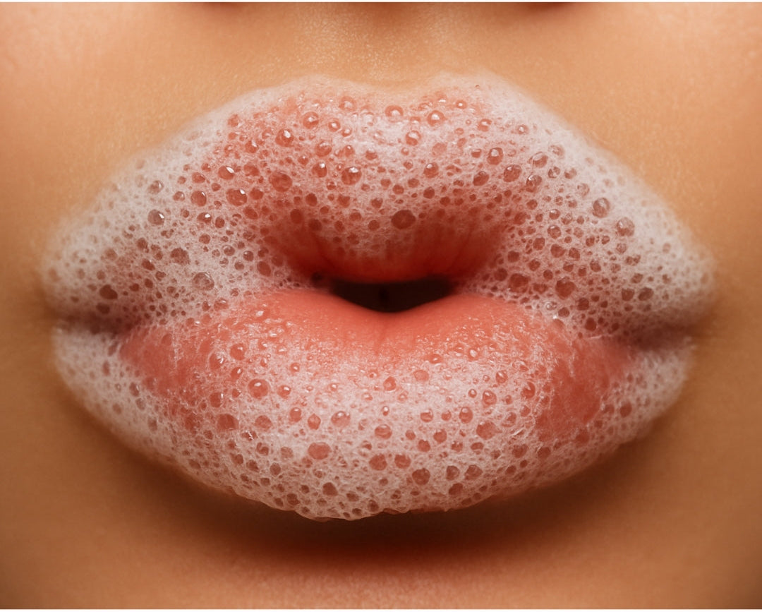Apply Bubble Buff to clean lips. Let the bubbles work their magic for 30–60 seconds, then gently massage and rinse.